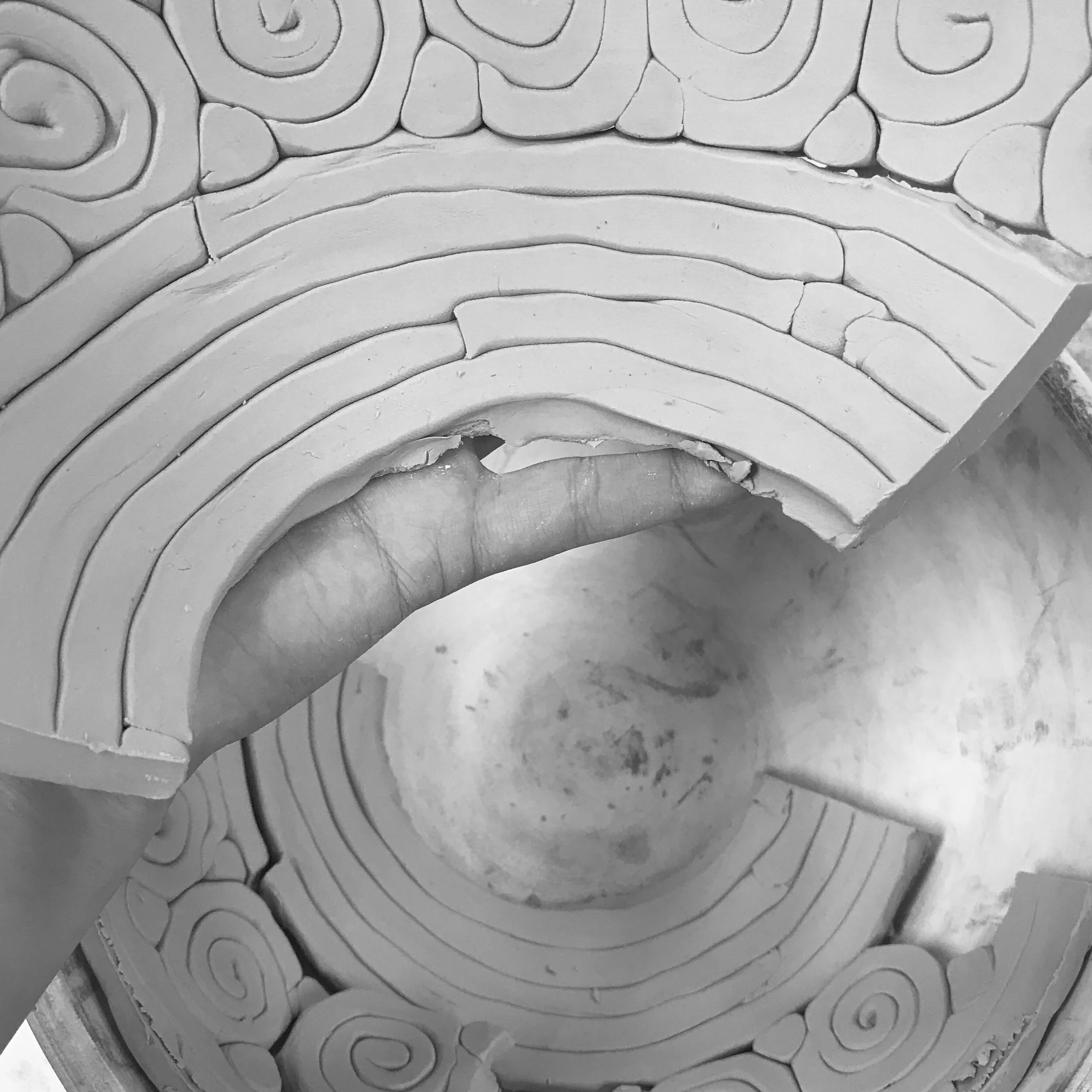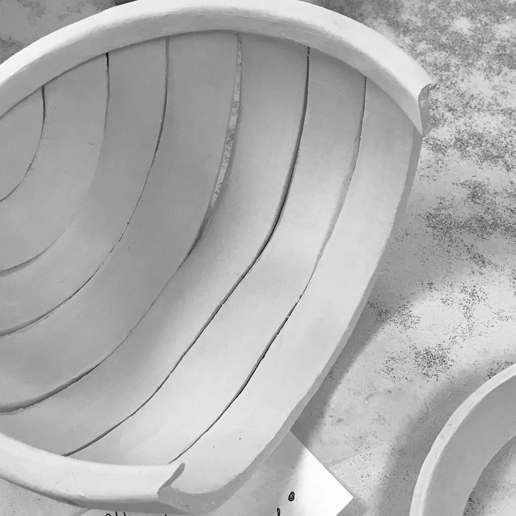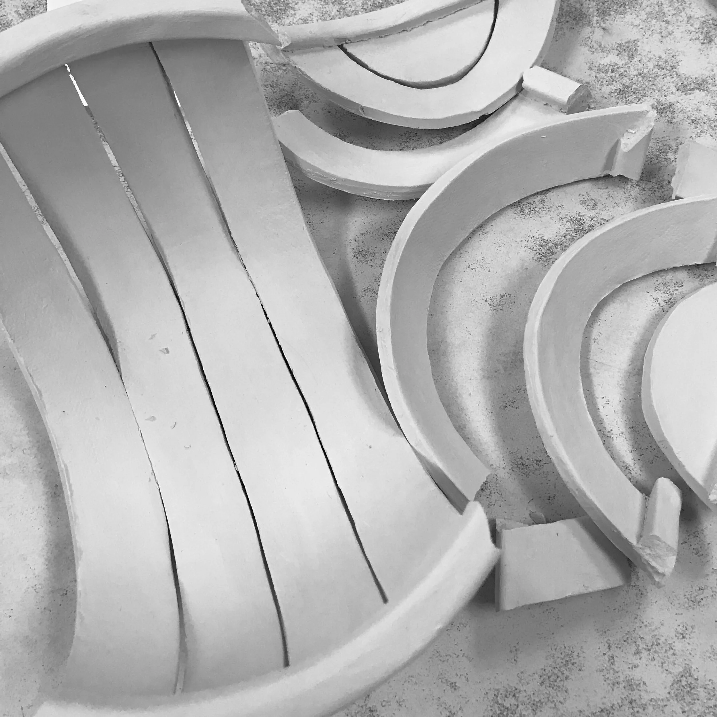 These are broken pieces, from which I learned more about clay. A summary of working with clay to create a series of forms. It is easier to draw lines on paper than forming them with clay. Stacking clay lines on each other is hard because they tend to escape from each other. I guess that is the issue with making a free-formed shape. More continuing experiences are coming.